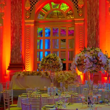 Transform your event space with uplighting. This package is perfect for smaller intimate spaces. This popular lighting effect works by strategically placing light fixtures on the floor and aiming them upward. This simple technique can dramatically change the look and feel of any room, adding a layer of depth, color, and sophistication. Uplighting is an incredibly effective way to enhance the ambiance, highlight architectural features, or match your event's color scheme.